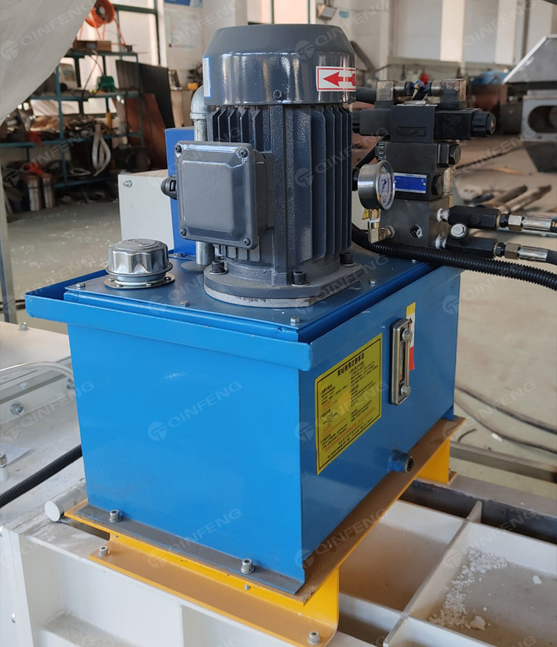 秦風機械正在制造泡沫塑料壓實機來解決這個問題。它可以減小EPS材料的尺寸,壓縮比可達1:30-1:50。成品為EPS塊,密度可達300kg/m3。客戶可以輕松地將 EPS 材料運送至另一個回收處理單元。